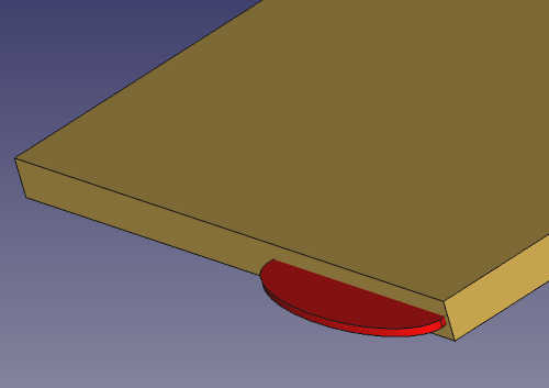 ジョイントカッターを使って溝を掘る場合に、楕円体の半分の溝ができます。